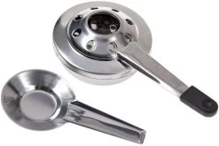 Con el juego de fondue Mr. Big podrás disfrutar de una larga comida con amigos o familiares. Pero, ¿sabías que un tentempié salado y caliente siempre triunfa en una fiesta? Mr. Big de Boska es un auténtico reclamo que te convertirá en la estrella de todos los espectáculos. Gracias a su contenido de nada menos que 6,5 liras Mr. Big es lo suficientemente grande como para hacer una fondue con doce personas. El juego de fondue viene con doce tenedores, una base de madera y tres quemadores para asegurar que la sartén se mantenga caliente.