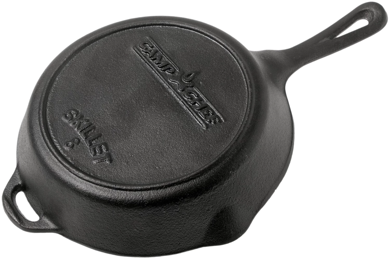 La skillet/sartén de 8″ de Camp Chef está hecha de hierro fundido y es perfecta a la hora de preparar diferentes comidas. Piensa en crepes, tortillas, patatas fritas o un buen trozo de carne. Puedes usar está sartén en los fogones, pero también te demostrará su eficacia en el horno o sobre las llamas de la hoguera. Así se puede levantar fácilmente la sartén. La doble boquilla de vertido garantiza que se pueda verter fácilmente el exceso de zumo.