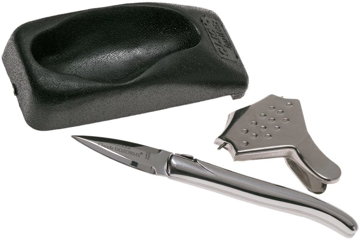 Este Set para ostras de Claude Dozorme es la base para una fiesta de ostras perfecta. Una base sólida para mantener la ostra en su sitio, un cuchillo para ostras y un exprimidor para el zumo de limón.