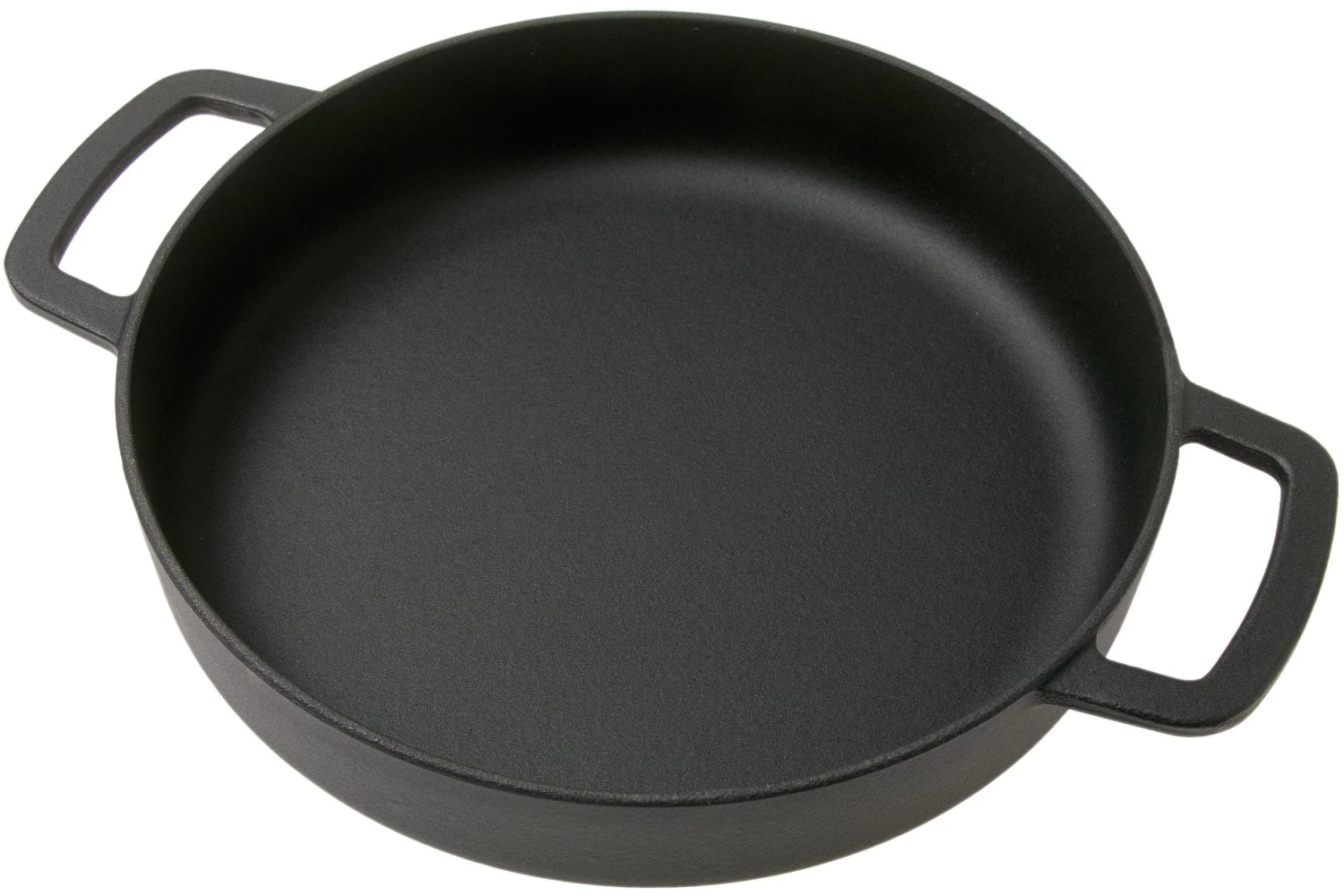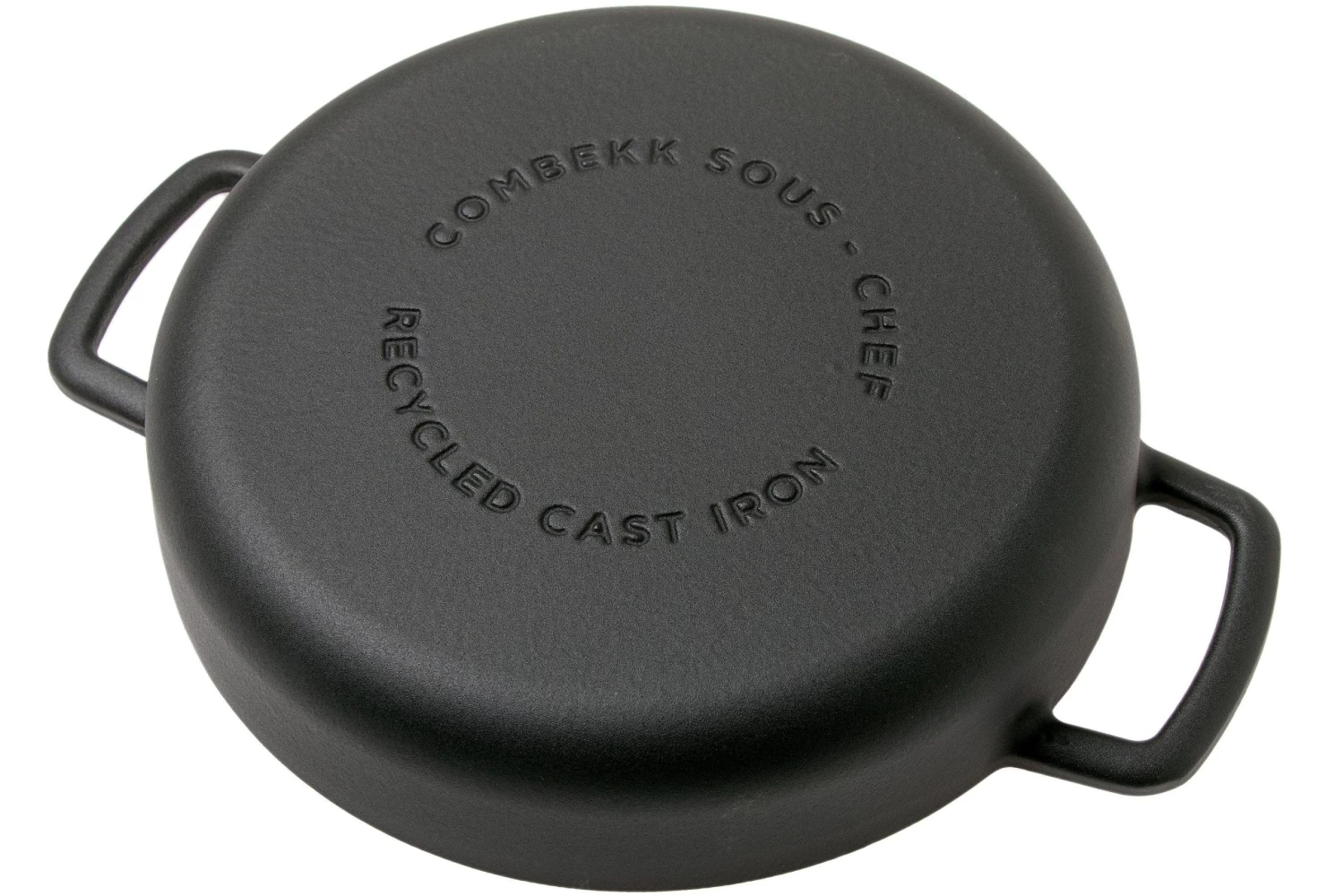 Esta sartén negra de 24 cm Combekk Sous Chef está hecha de hierro fundido 100% reciclado. Las sartenes están mejoradas con un fuerte revestimiento de esmalte y no contienen PFAS, PFOA ni PTFE.