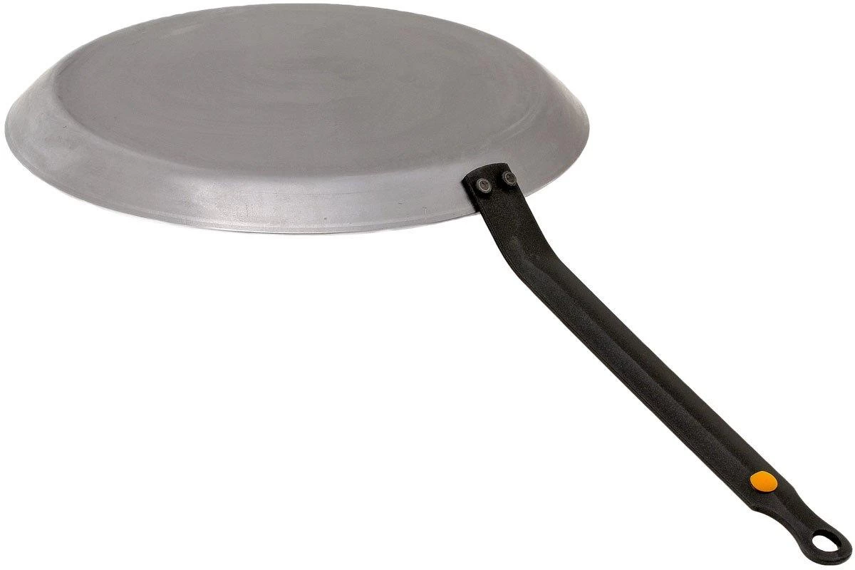 Esta sartén de Buyer Mineral B Element es una sartén especial que tiene un precio muy competitivo. Está hecha de acero al carbono. Un tipo de acero que no es inoxidable. Eso puede parecer un inconveniente, pero puede funcionar como una ventaja si se utiliza con cuidado. La sartén es sólida y pesada. No tiene revestimiento antiadherente, pero se formará uno automáticamente al utilizar la sartén. Debido a que las sartenes no tienen un revestimiento antiadherente, pueden cocinar a temperaturas muy altas. Además, puedes utilizar utensilios de cocina de acero sin preocuparte de dañar el revestimiento antiadherente. Estas sartenes Mineral B Element tienen una fina capa de cera de abeja en la superficie de cocción en el momento de la entrega. Esto reduce significativamente la posibilidad de corrosión en el momento de la entrega. También ayuda a aromatizar la sartén, por lo que la sartén es ligeramente más antiadherente desde el principio, que la serie Acier Carbone normal. Se puede utilizar en todas las placas de cocción. Incluyendo la inducción, e incluso se puede utilizar en el horno. Ten en cuenta que el mango de esta sartén se calienta. Lava esta sartén sólo con agua caliente y un cepillo. El jabón está completamente descartado y el lavavajillas causará un daño irreparable a la sartén. Estas sartenes necesitan un tratamiento especial, pero cuando se usan correctamente, es un placer trabajar con ellas.