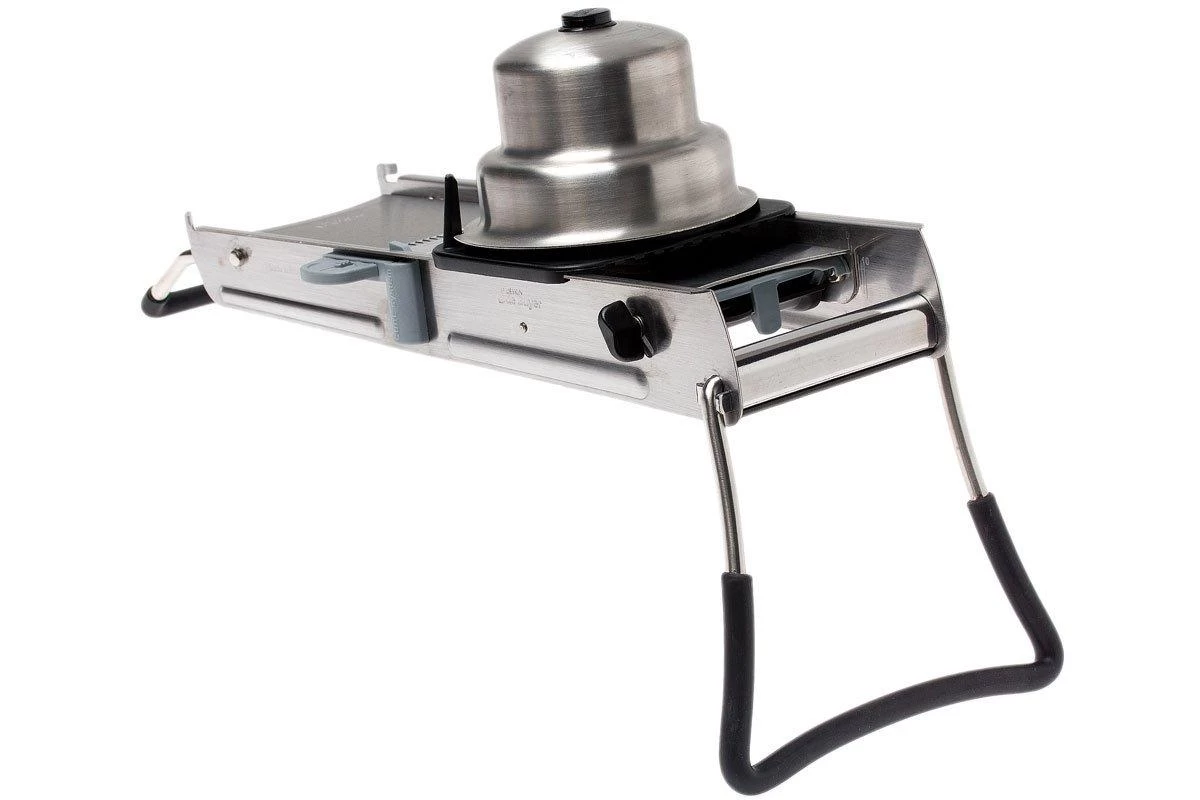 La mandolina Revolution de Buyer es resistente, robusta y versátil. El marco de acero inoxidable es extremadamente resistente y fácil de limpiar. Rodajas, gofres, cubos, tiras o diamante: esta mandolina puede hacerlo todo. La única limitación está en tu imaginación.