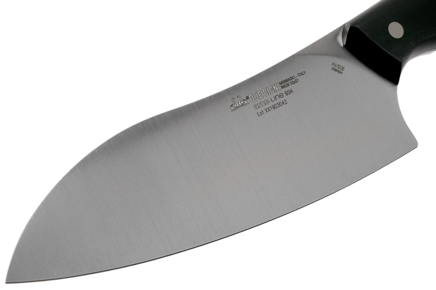 Este cuchillo santoku de la Arne Line de Due Cigni impresiona a los amantes de la cocina. La notable forma de la hoja y el mango curvado (para evitar la fatiga) hacen que este cuchillo sea único. No es de extrañar si se tiene en cuenta que los cuchillos de esta colección han sido diseñados por el cuchillero danés Jens Ansø. Como es habitual en los diseños de Ansø, la perfección y la funcionalidad son la clave. Y se nota cuando se mira el cuchillo.