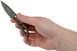 El Candiru es el cuchillo más pequeño de la colección ESEE. Eso sólo se aplica al tamaño, pero no a la calidad y la durabilidad. La hoja está hecha de acero al carbono 1095, muy utilizado por ESEE. Tiene unas propiedades de corte sublimes y se puede afilar fácilmente. Esee ha añadido un recubrimiento de polvo negro a la hoja de acero al carbono que ayuda mucho contra la corrosión. Aconsejamos guardar el cuchillo en seco y engrasarlo o aceitarlo antes de guardarlo. Para cubrirte las espaldas.