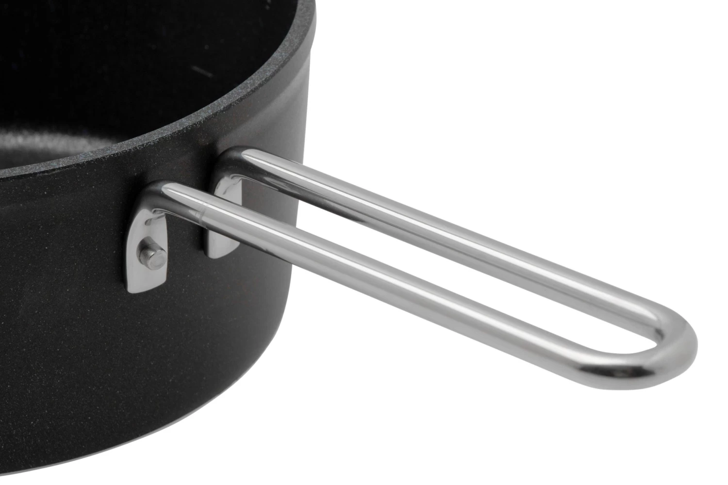 La sartén Fissler Adamant 18 cm es una sartén relativamente pequeña, única y extraordinaria. El revestimiento antiadherente contiene carburo de silicio, lo que lo hace extremadamente robusto y resistente a los rasguños. ¿Has metido tus espátulas de silicona en el lavavajillas? Simplemente utiliza tus utensilios de cocina de metal en las sartenes Fissler Adamant.