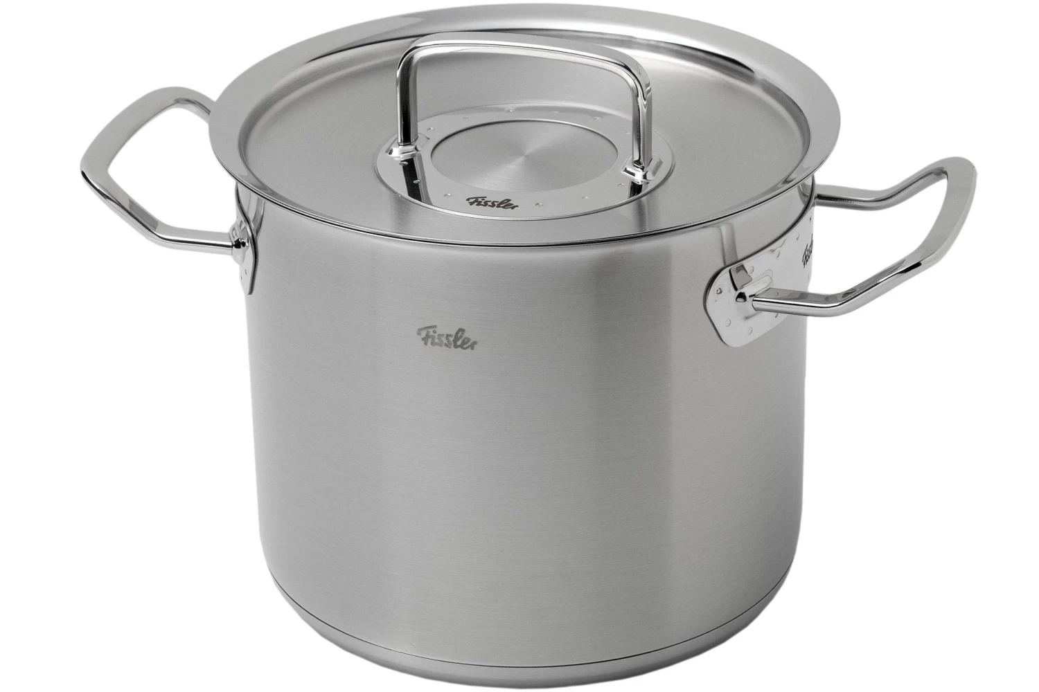 Esta olla alta de la colección Fissler Original Profi tiene un diámetro de 20 cm y un borde extra alto de 17,5 cm. Como tal, es ideal para preparar una sopa. El contenido de la olla es de 5,2 litros, la capacidad del interior es de 4 litros.