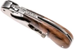 Con el sacacorchos de camarero Laguiole Magnum fabricado por Fontenille Pataud, abrirás la botella de vino igual que un sumiller. El cuchillo combina tres funciones: es un corta cápsulas, sacacorchos y abrebotellas. Hecho por los fabricantes de cuchillos franceses Fontenille Pataud. Este sacacorchos de camarero tiene un mango de madera de nogal y acero inoxidable que le da un diseño elegante y estilizado.