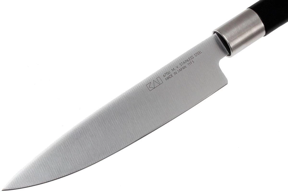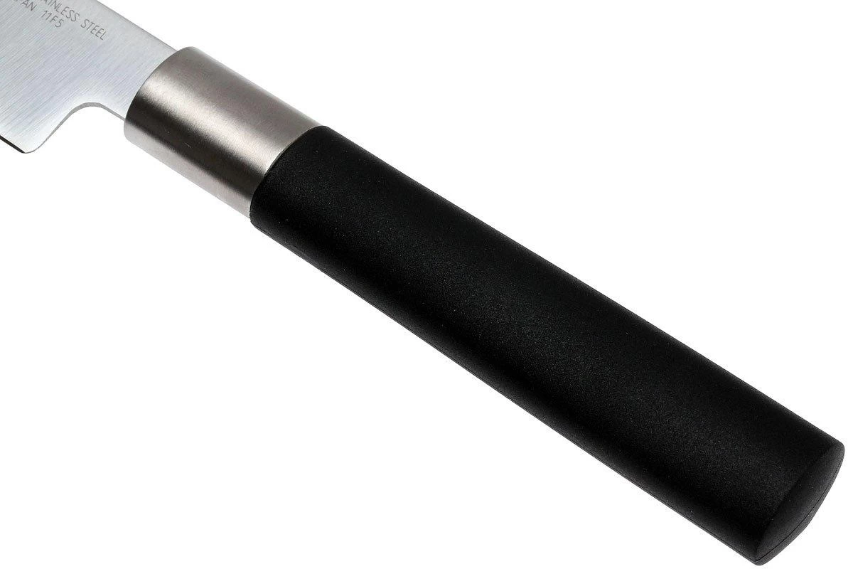 Kai es conocida por sus cuchillos de cocina Kai Shun de alta calidad. Con esta colección Kai Wasabi, esta alta calidad está ahora también disponible a un precio más asequible. La hoja de acero inoxidable realizada en acero Daido 1K6 tiene un afilado fino y está endurecida a una dureza de 58 HRC. Como el cuchillo no tiene virola, puedes utilizar todo el filo. Esto también facilita el afilado. El mango está hecho de una combinación de polvo de bambú y polipropileno. Esto hace que el mango sea sostenible e impermeable.