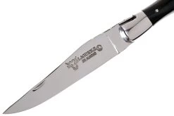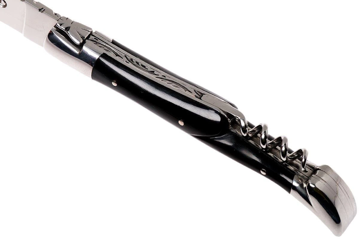 Esta navaja Laguiole en Aubrac de 12 cm tiene un sacacorchos. No sólo se beneficia de las funcionalidades de esta impresionante navaja Laguiole, sino que también es capaz de abrir una botella de vino. El lomo del mango está decorado con un sorprendente trabajo de limado. La hoja está hecha de acero inoxidable Sandvik 12C27. Tanto los cabezales como la hoja están abrillantadas. Esto hace que la navaja tenga un aspecto más elegante.