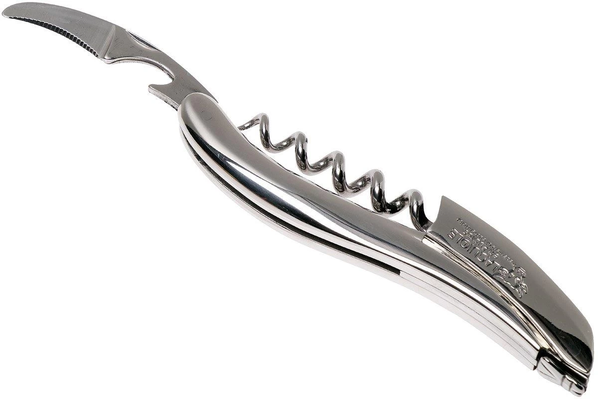El sacacorchos de camarero Laguiole en Aubrac SOP99IBI es un cuchillo muy elegante y lujoso. El cuchillo está completamente fabricado en acero inoxidable pulido. Utiliza este cuchillo para abrir una botella de vino con más caché. Este elegante sacacorchos está hecho a mano por los artesanos de Laguiole en Aubrac.