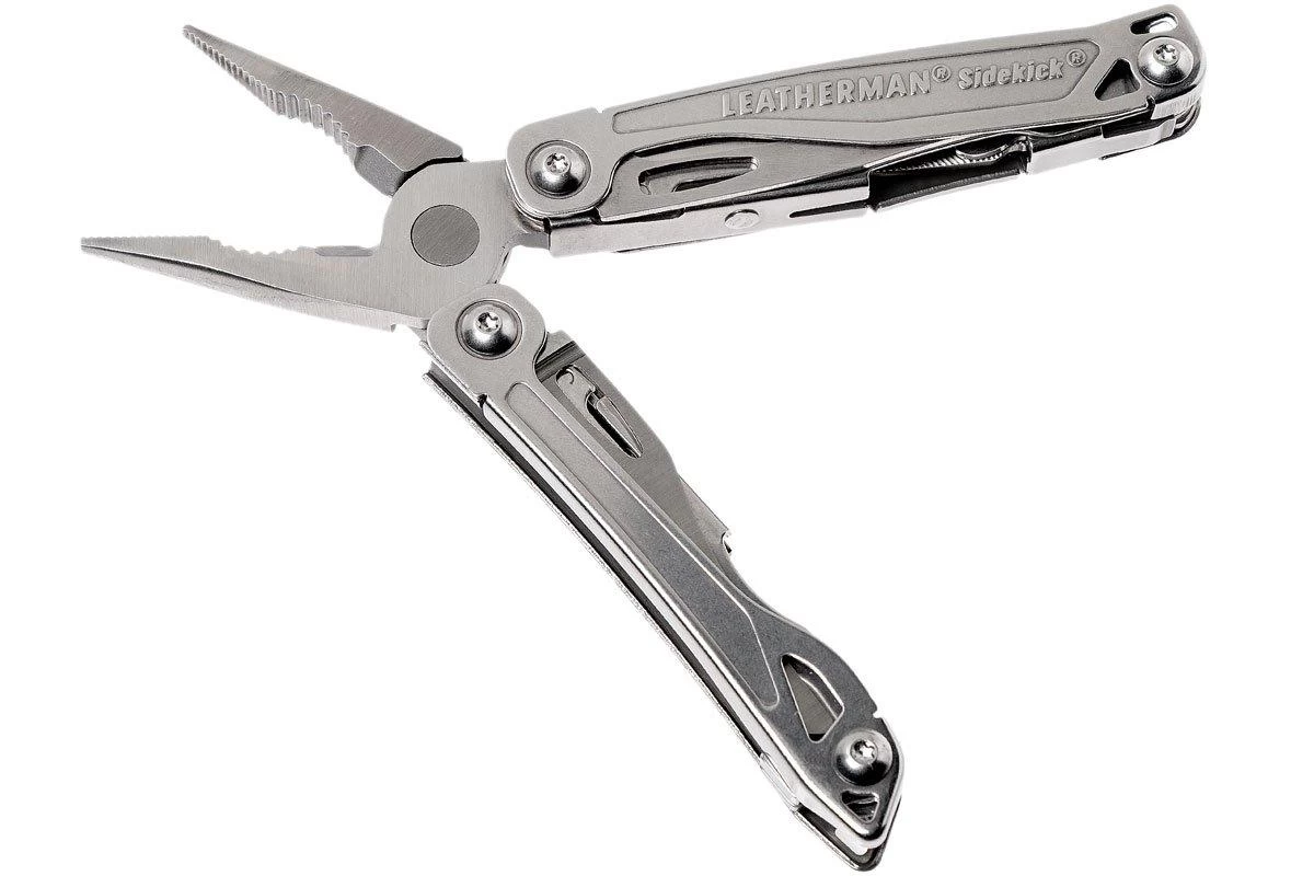 Multiherramienta con alicates y dos cuchillos. A pesar de su amplia gama de accesorios, esta multiherramienta es relativamente compacta y es cómoda de llevar en la mano o en el bolsillo. Tanto el cuchillo como la sierra pueden utilizarse con seguridad gracias a su sistema de bloqueo. La Sidekick es muy similar al modelo Leatherman Wingman. Esta multiherramienta tiene tijeras en lugar de una sierra. Además del cuchillo de filo liso y la sierra, el Sidekick cuenta con un corto cuchillo dentado.