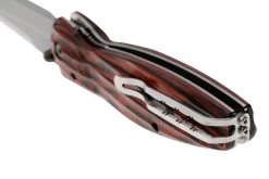 La Mcusta MC-0183D Sengoku Tokugawa Ieyasu es una extraordinaria navaja japonesa, con impresionantes detalles. La hoja está compuesta por un núcleo de acero VG10, revestido de acero de Damasco niquelado. Como es de esperar de los fabricantes japoneses, el filo es muy afilado. El mango es especialmente bonito. La madera está tallada en 3D para un agarre de aspecto agradable, y esto es funcional también, ofreciendo una mejor tracción.
