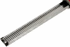 El rallador Microplane Premium Classic es un accesorio delgado, práctico y muy sostenible en tu cocina. El rallador está hecho de acero inoxidable resistente y mejorado con una funda protectora. El rallador Premium está mejorado con un mango suave al tacto, lo que hace que se sienta muy bien en la mano. La base está reforzada con dos pies de goma antideslizantes. Muy práctico es poner el rallador en su estación de trabajo.
