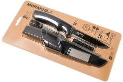 El Mora Bushcraft Survival es un cuchillo muy popular, y por razones de peso. Es una hoja fija, hecha de acero al carbono. El acero tiene un revestimiento negro para protegerlo de la corrosión. Además, también es bonito. Las dimensiones del Bushcraft Survival están muy bien elegidas. Lo suficientemente grande para el trabajo más pesado, lo suficientemente pequeño para llevarlo contigo. El peso de 125 gramos puede incluso calificarse de ligero.