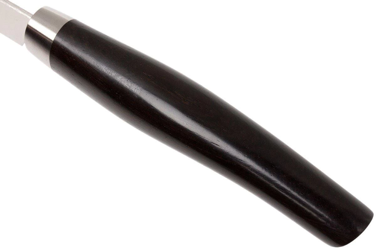 Madera africana de color marrón oscuro, casi negro. La granadilla es conocida por su extrema dureza, durabilidad y peso. La combinación del mango oscuro y la hoja brillante de color gris plateado hace que este cuchillo Nesmuk se adapte a cualquier decoración. El mango tiene una ergonomía perfecta, por lo que tus manos no se fatigarán.