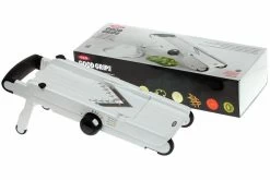Las mandolinas son herramientas muy útiles para cortar frutas y verduras. Corta tus verduras de forma rápida y segura, con un grosor ajustable. Al igual que con un robot de cocina, se corta un grosor constante de rodajas. Sin embargo, limpiar una mandolina es mucho más rápido que limpiar un robot de cocina.