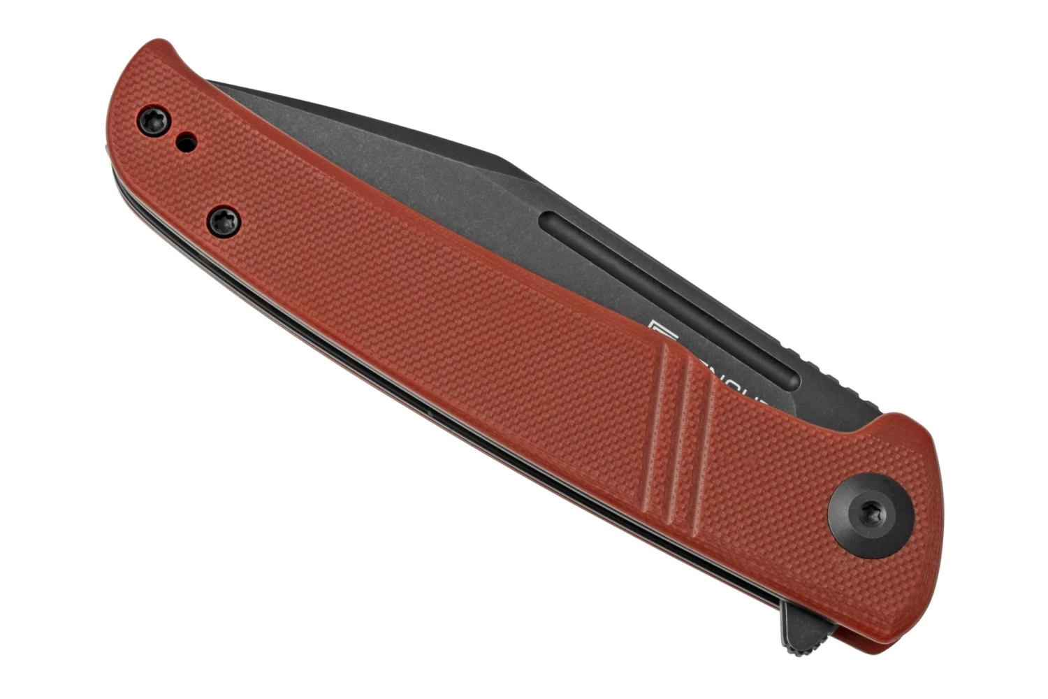 La SENCUT Brazoria es una sencilla navaja de Sencut. La hoja de punta de clip se abre con el flipper, y los rodamientos de bolas hacen que esta acción sea extremadamente suave. Cuando se abre, la hoja queda bloqueada por un robusto cierre de acero inoxidable. El mango tiene una ranura para el dedo y algunos recortes en el G10. Esto hace que el cuchillo sea muy cómodo de sostener.