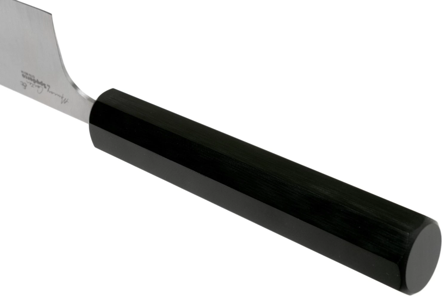 El cuchillo Spyderco Wakiita Gyuto de la Colección Murray Carter es el cuchillo más versátil de esta colección. Gyuto significa literalmente «hoja de vaca». El gyuto es el equivalente japonés al cuchillo de chef occidental. Gracias a tu diseño versátil, puedes utilizar este cuchillo para cortar carne, pescado y verduras o utilizarlo para picar hierbas.