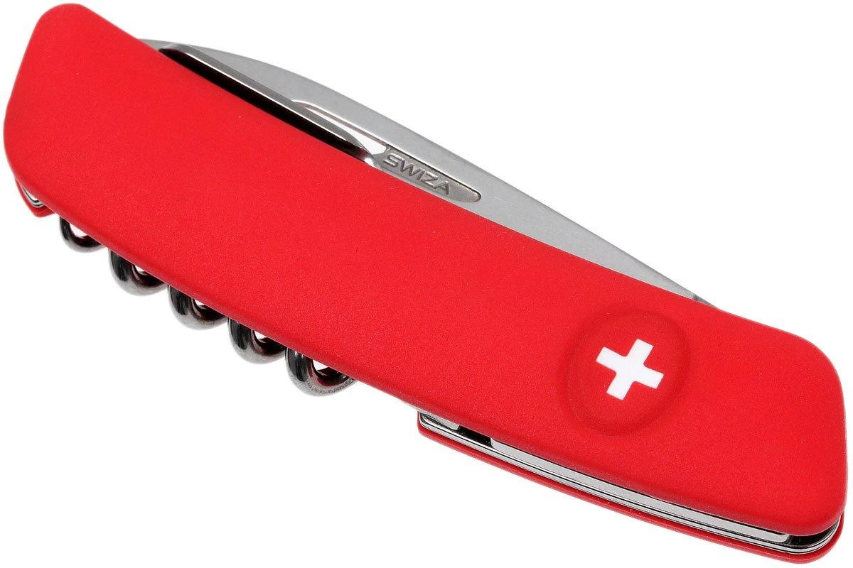 La Swiza D01 es una navaja contemporánea inspirada en las clásicas navajas suizas. Lo primero que notarás es el diseño moderno y ergonómico del cuchillo. La innovación es fácil de ver cuando se mira el bloqueo. El cuchillo se desbloquea presionando el logotipo en el mango. Swiza también ha tenido en cuenta a los usuarios zurdos con un recorte en la hoja que puede utilizarse desde ambos lados.