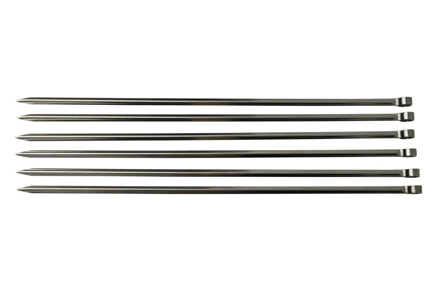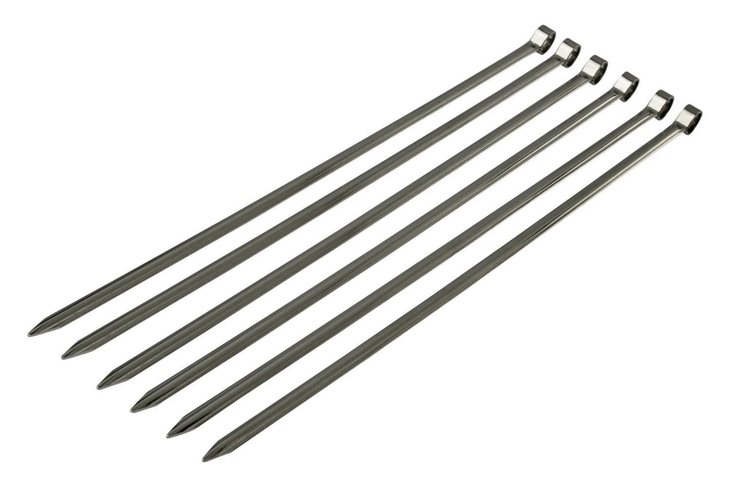 Los pinchos de barbacoa de Tramontina Churrasco de 40 cm son seis brochetas largas de acero que no deben faltar en tu próximo asado. Los pinchos tienen forma de V. Como tales, los ingredientes se mantienen bien en su sitio. Incluso cuando se les da la vuelta. Al ser relativamente largas, estas brochetas son más adecuadas para asar grandes trozos de carne, verduras y pescado.