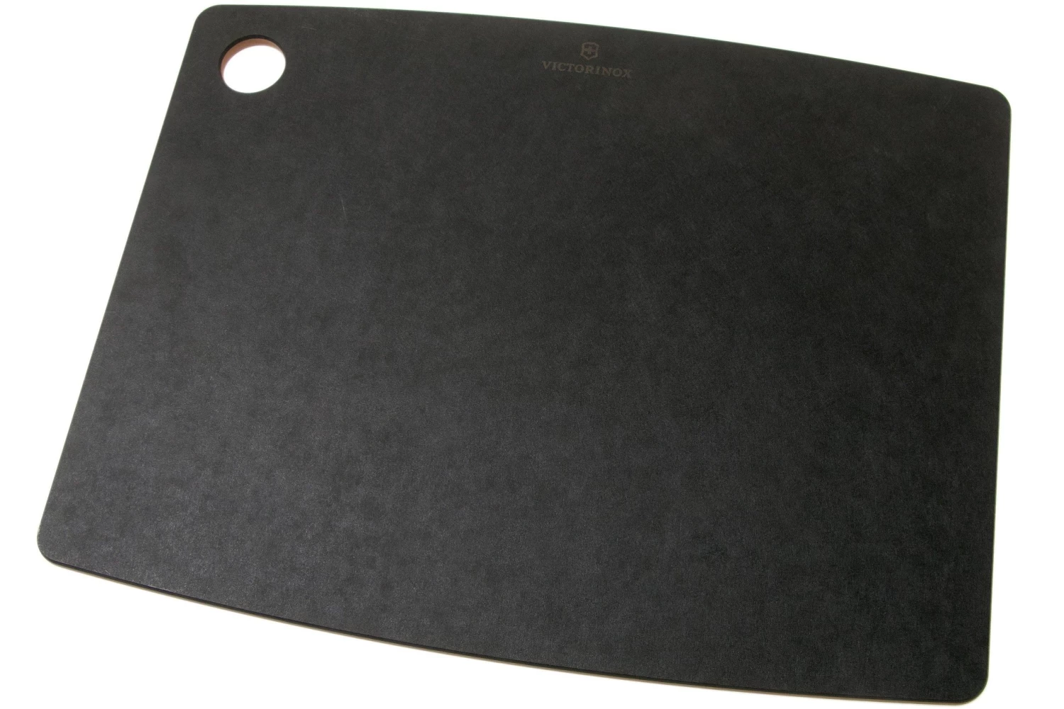 Esta tabla de cortar Victorinox Gourmet negra tiene 36,8 cm de largo y 28,5 cm de ancho. Esta tabla de cortar está hecha de fibras de madera. Se trata de un material de producción respetuoso con el medio ambiente. La tabla es increíblemente sostenible y puede soportar hasta 175 grados Celsius. Como tal, también es resistente al lavavajillas. La tabla está mejorada con una «ranura» marrón que puede atrapar la humedad y las migas, por ejemplo. Así, tu lugar de trabajo se mantiene seco y limpio.