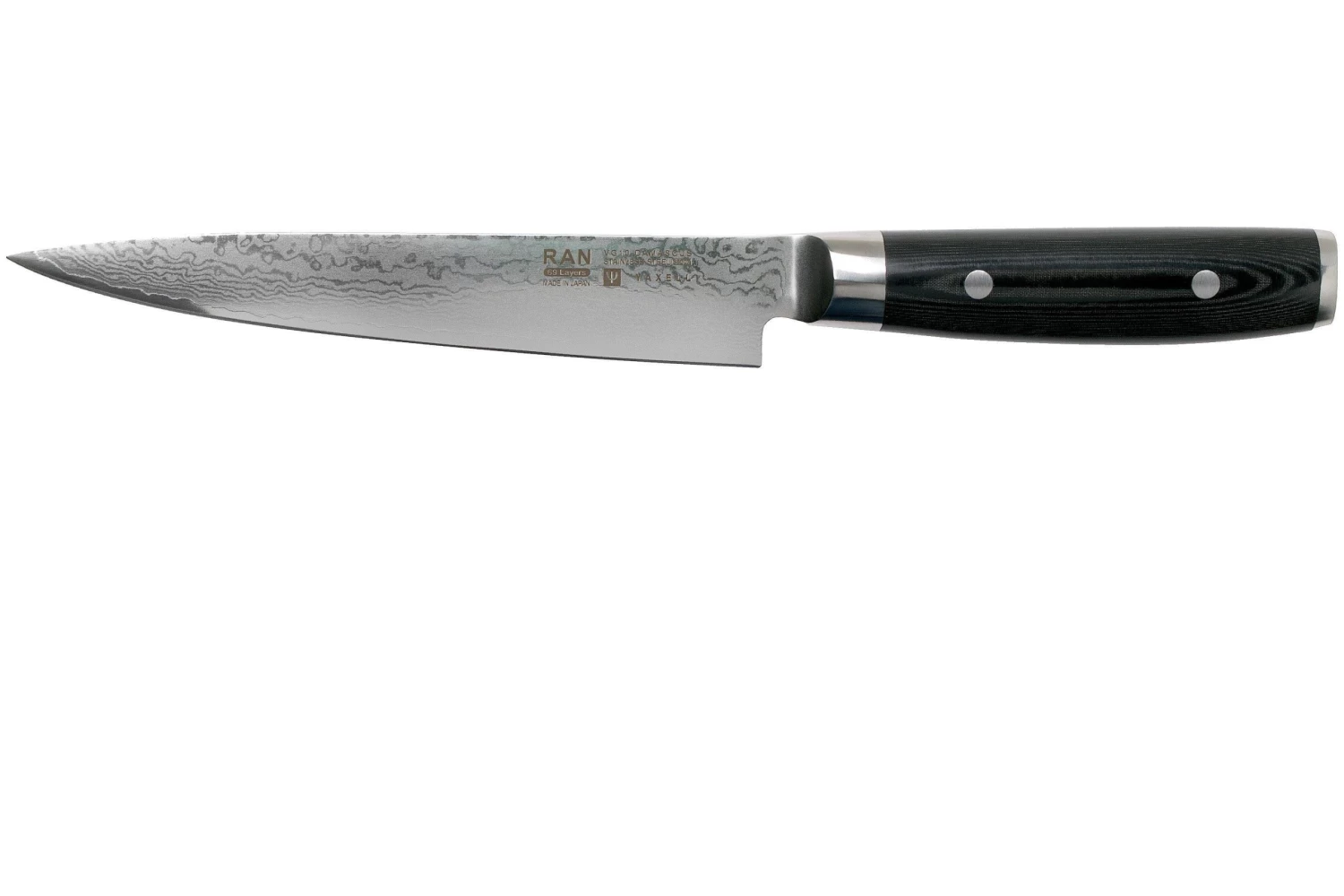 El cuchillo para trinchar Ran de Yaxell es un cuchillo para trinchar tradicional japonés con un gran diseño. La hoja de 18 cm de longitud permite realizar cortes largos. Las rebanadas no se pegan fácilmente a la hoja. Así se pueden cortar fácilmente rodajas finas sin romper la carne. La punta afilada es perfecta para tareas pequeñas y delicadas como la eliminación de tendones o grasa.